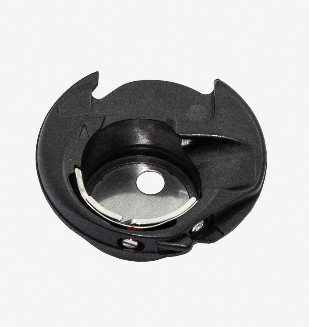 Caixa da bobina desenvolvida para máquinas eletrônicas e bordadeira que possuem corte de linha automático e que não possuem sensor de linha da bobina.