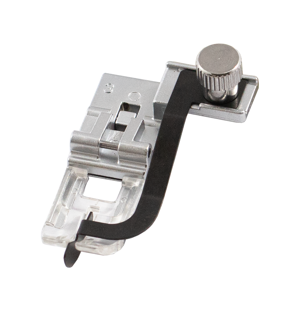 Esse calcador é usado para costurar por cima de pontos previamente realizados para dar mais reforço. Pode ser usado também para junção de tecido.