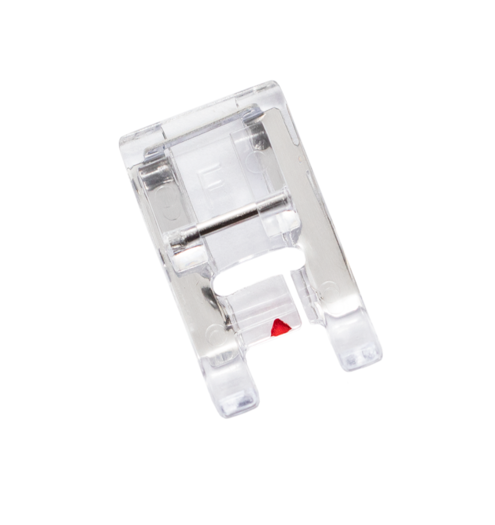 O calcador F para ponto decorativo e aplique foi desenvolvido para costura de pontos decorativos e para aplicações.