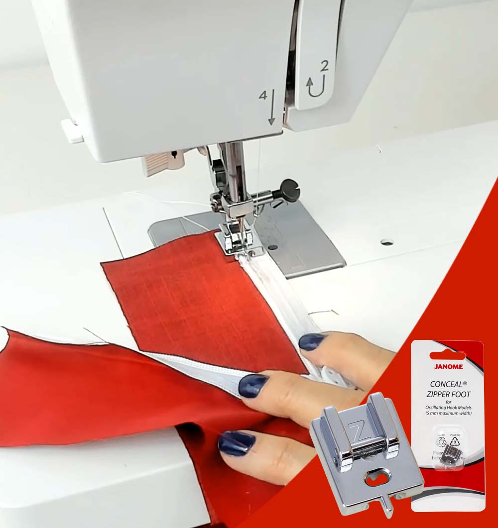 - 1 calcador para aplicação de zíper invisível