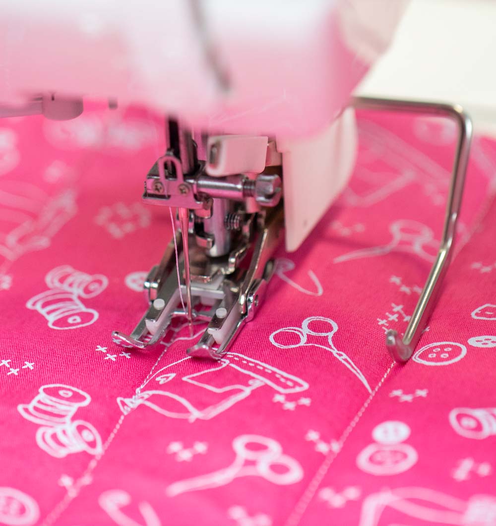 O calcador para quilting reto aberto foi desenvolvido para realização de costura de quilting reto.