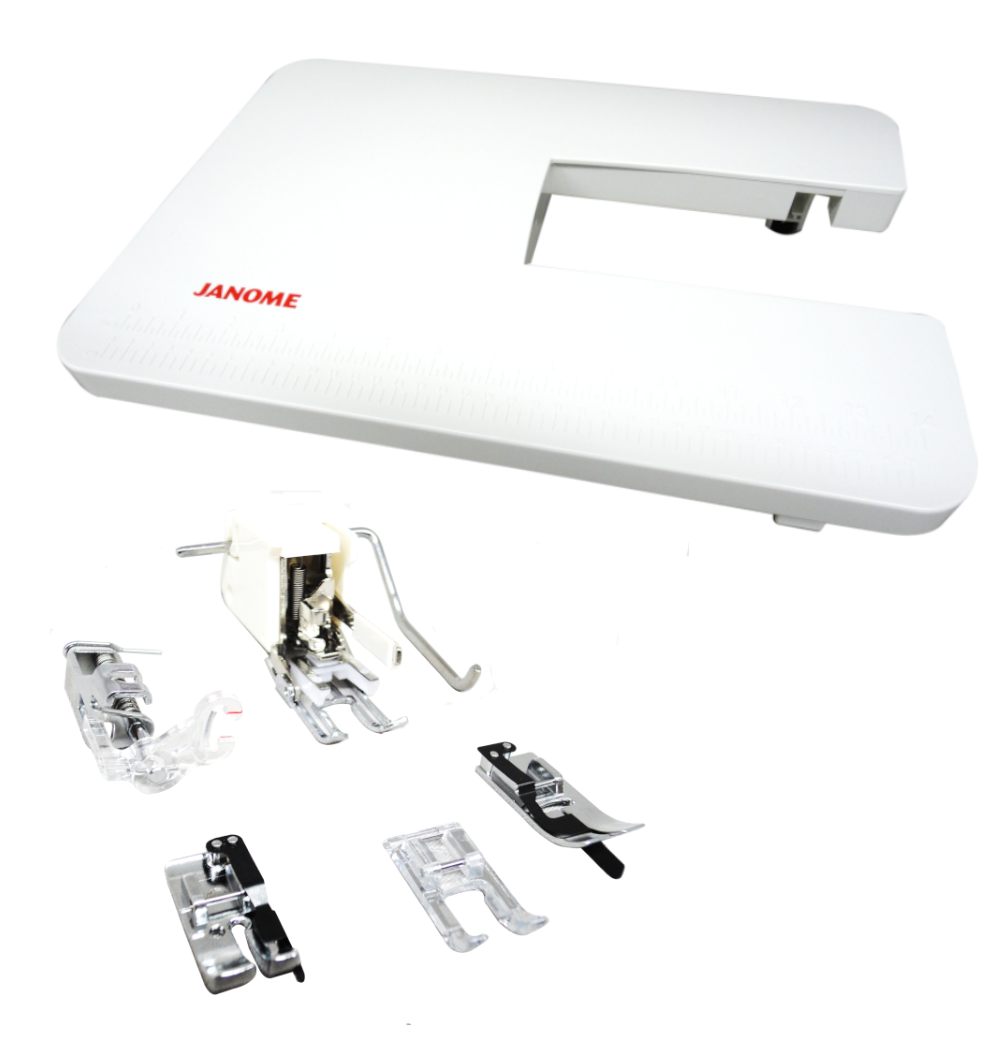 O conjunto de mesa extensora com calcadores foi desenvolvido para que você possa realizar grandes projetos de quilting e patchwork de forma prática e com mais espaço na área de trabalho.