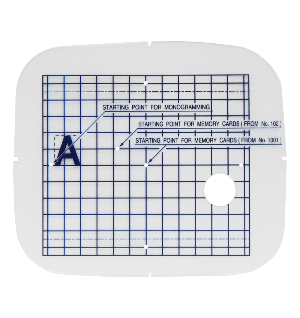 Esse gabarito deve ser utilizado com o bastidor 12,6 × 11 cm das máquinas de bordado MC300, MC350E e MC370E e máquinas de costura e bordado MC9500, MC9700 e 10001