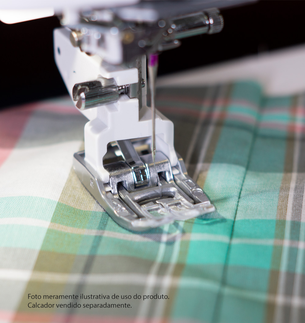 para modelos de máquina de costura eletrônica com lançadeira horizontal e largura máxima do ponto 9 mm com sistema Acufeed.